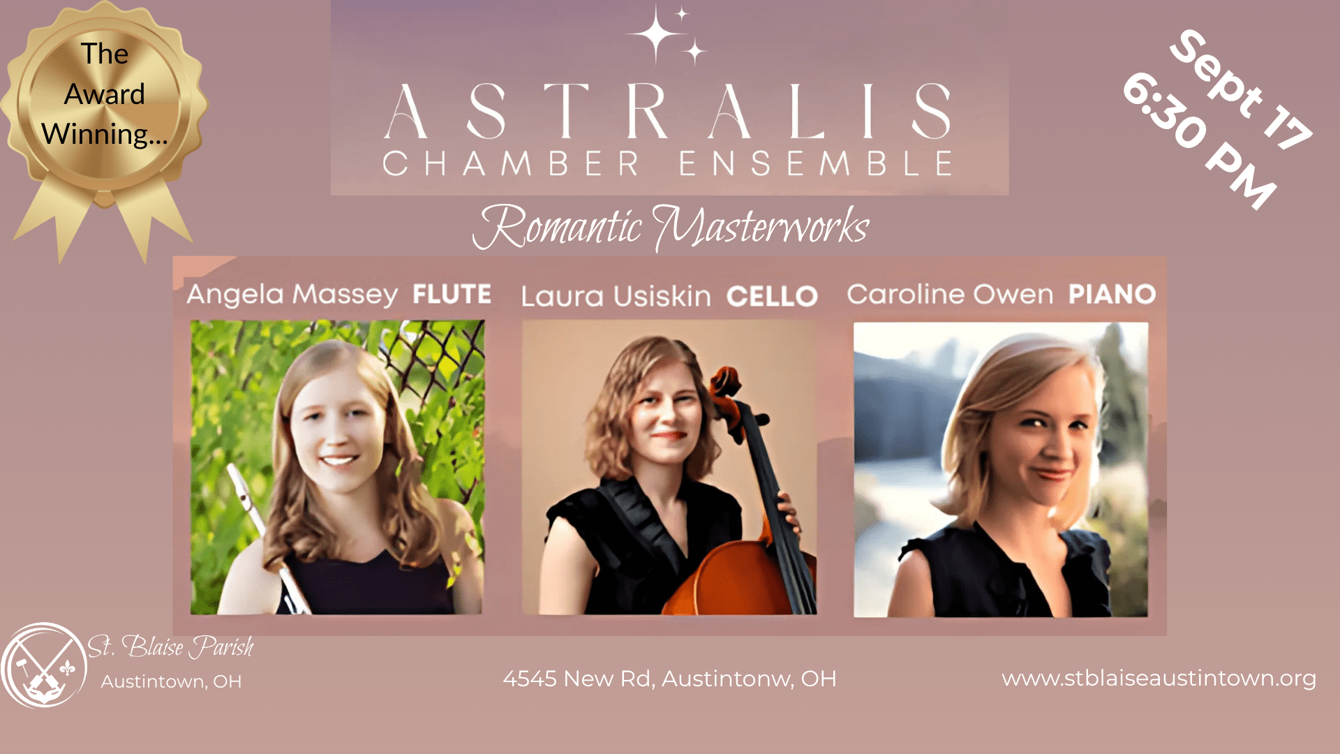 September 17, 2025, 6:30 PM: We are taking our concert series to new heights with this performance! Astralis, an award-winning chamber ensemble will perform "Romantic… more